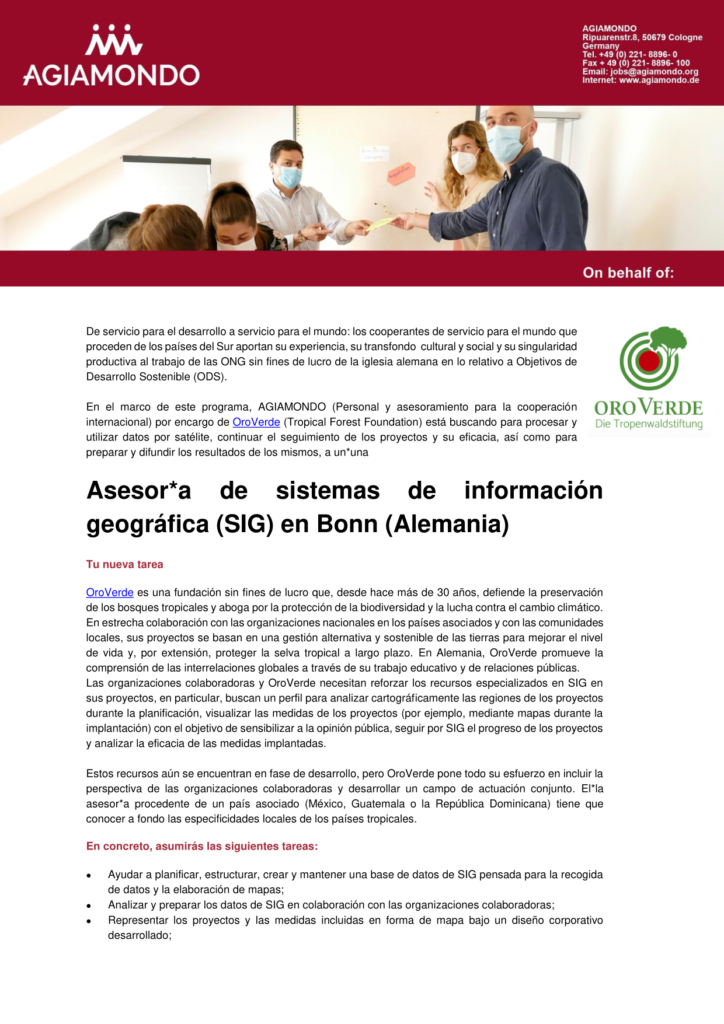 Si tienes experiencia en Sistemas de Información Geográfica (SIG) Esta puede ser tu oportunidad. https://jobs.agiamondo.de/job-asesor-a-de-sistemas-de… Clip en el enlace para mas información de la convocatoria.