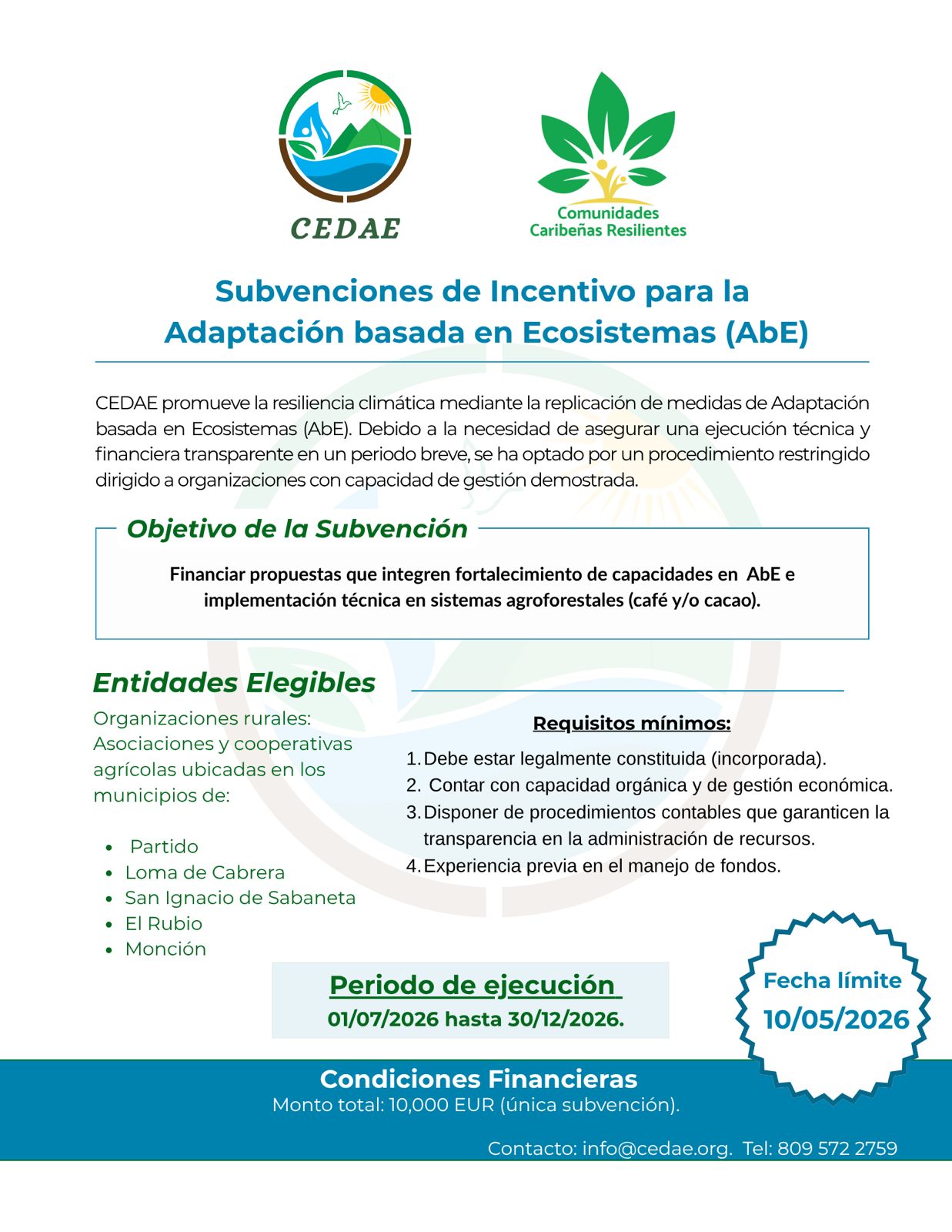 TDR Convocatoria de Subvenciones de Incentivo para la Adaptación basada en Ecosistemas (AbE).
